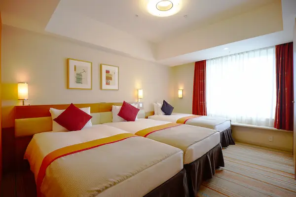 私たちが『舞浜ビューホテル by HULIC』で宿泊した客室は、セミダブルベッド2つと追加のエキストラベッドがある部屋でした。