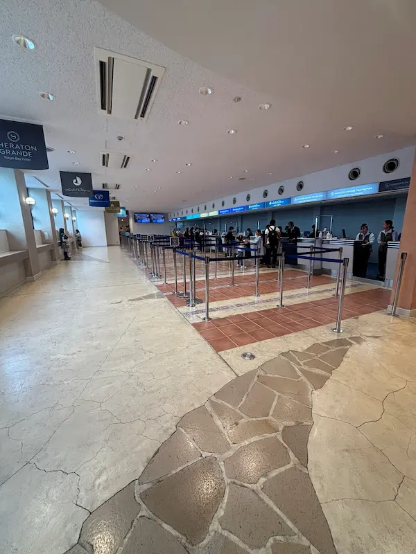 私たちは、階段もしくはエレベーターを使って1階に降りたところにあるオフィシャルホテル専用カウンターでプリチェックインとバゲッジデリバリーサービスを利用しました。
