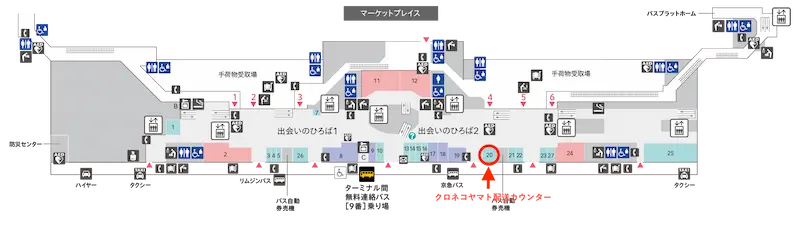 佐川急便と同じように、クロネコヤマトも羽田空港第2ターミナル1階に荷物の配送カウンターがあります。