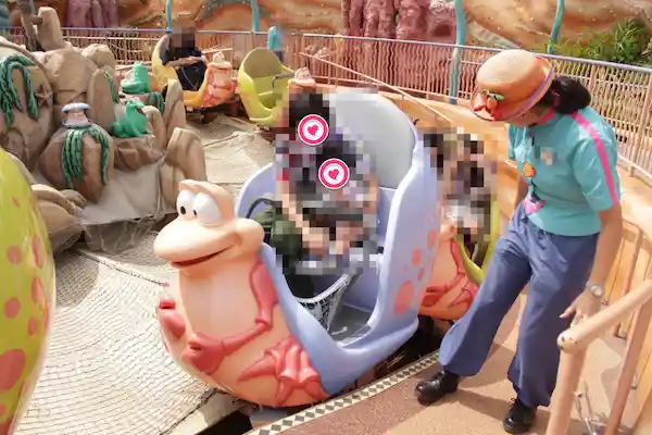 長男が3歳のときのディズニー旅行で、恒例のマーメイドラグーンで夫が長男と2人で乗ったアトラクションがこの『ブローンフィッシュ・バルーンレース』でした。