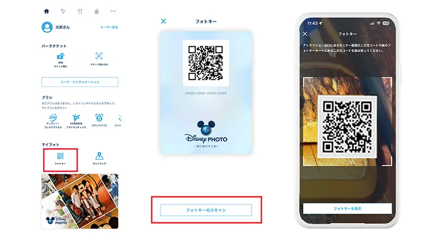 ↓↓にディズニー公式ホームページから画像をお借りしましたが、ディズニーアプリのフォトキーのスキャン機能からカメラを起動してライドショットのQRコードを撮影してくださいね!