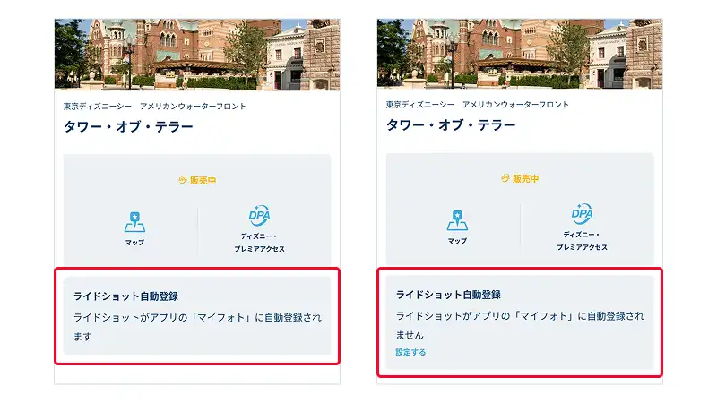 ですが、『タワー・オブ・テラー』では、ディズニーアプリで設定しておけば、自動でライドショットが入手できるのです。